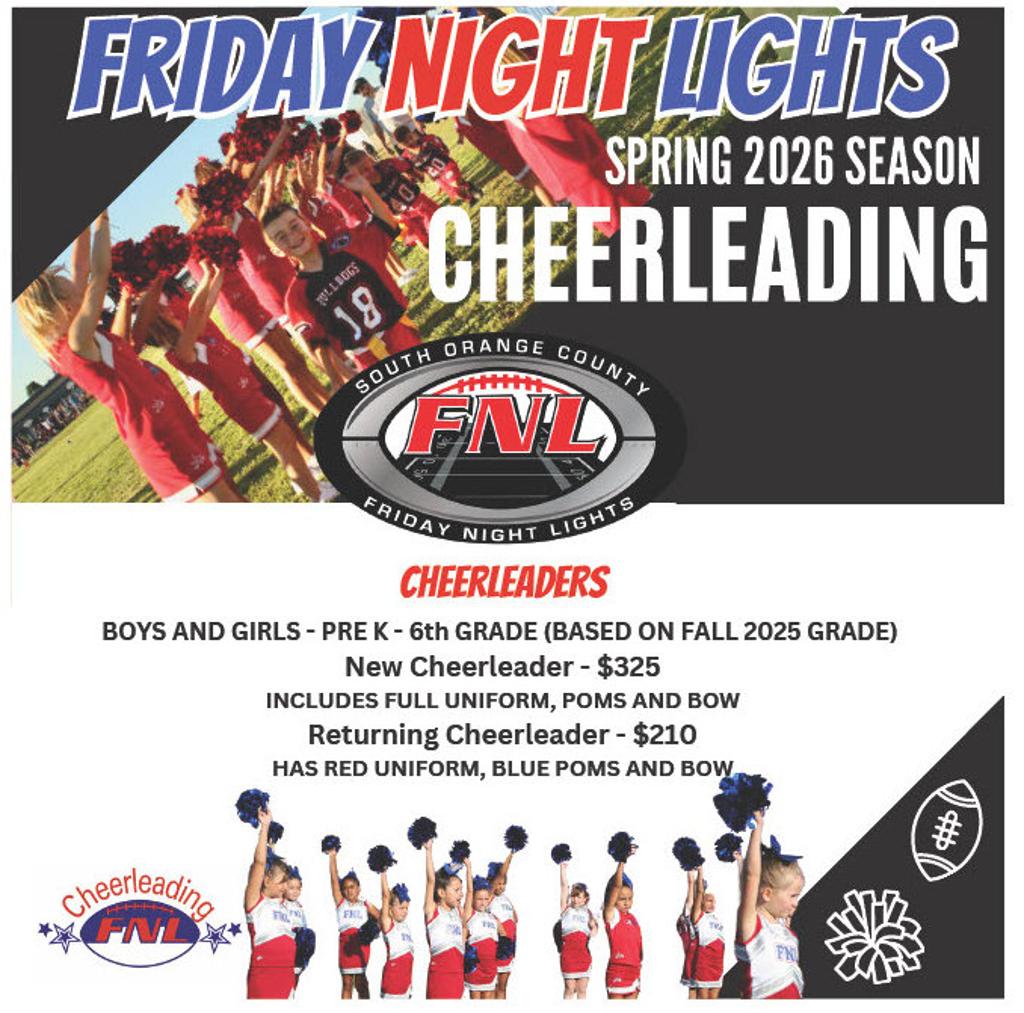 NEW CHEERLEADER: $325 (includes uniform, poms and bow